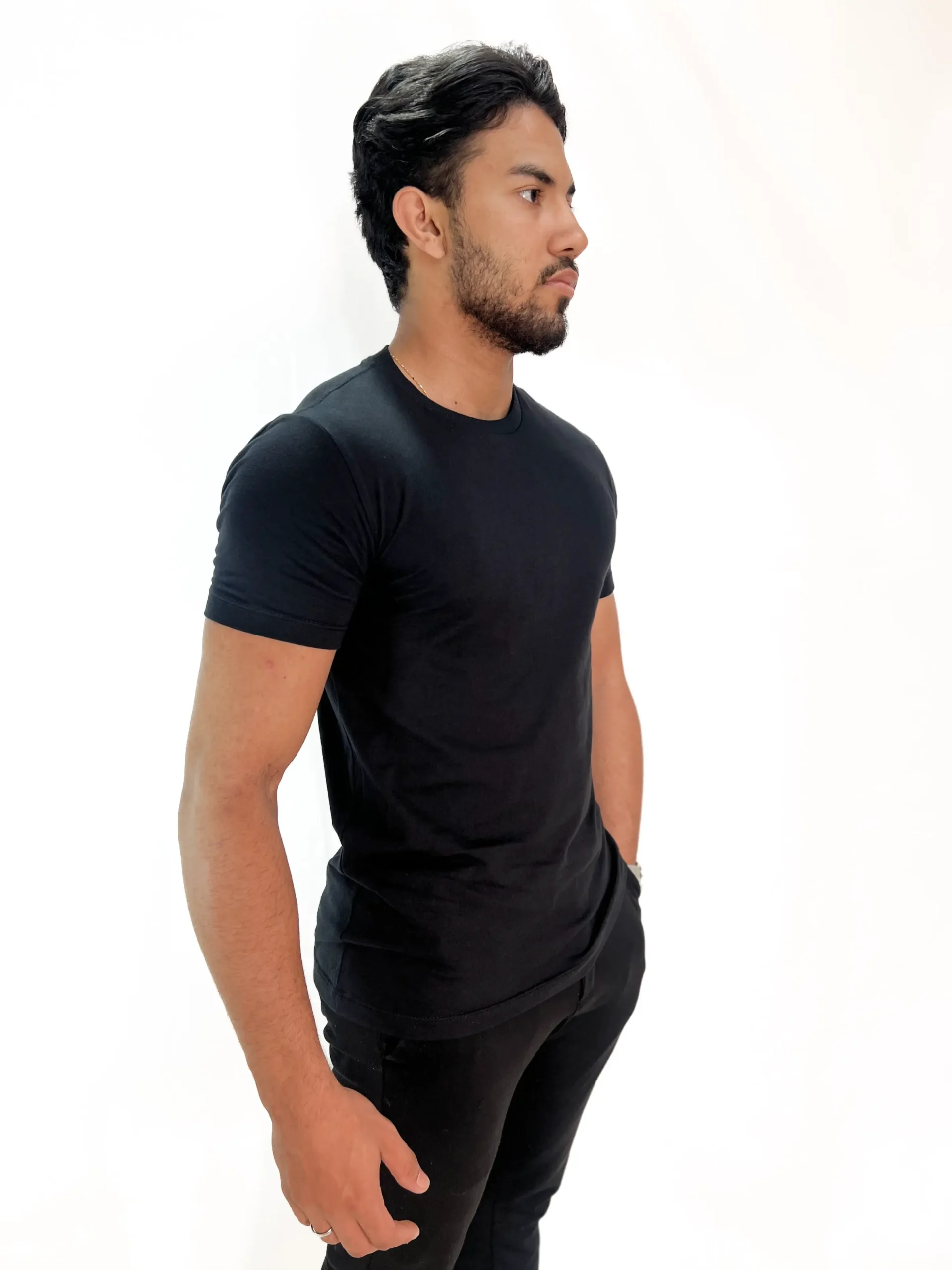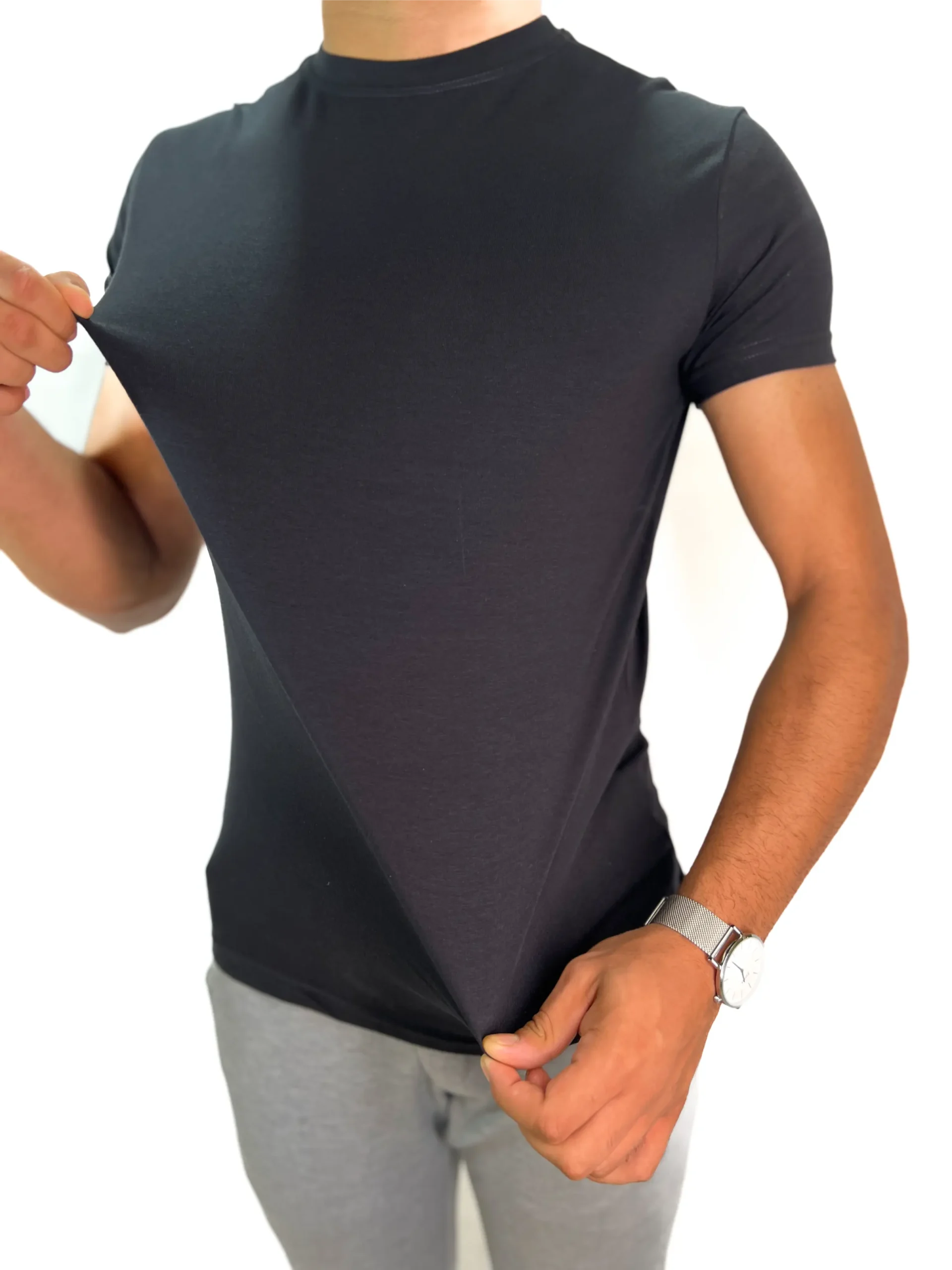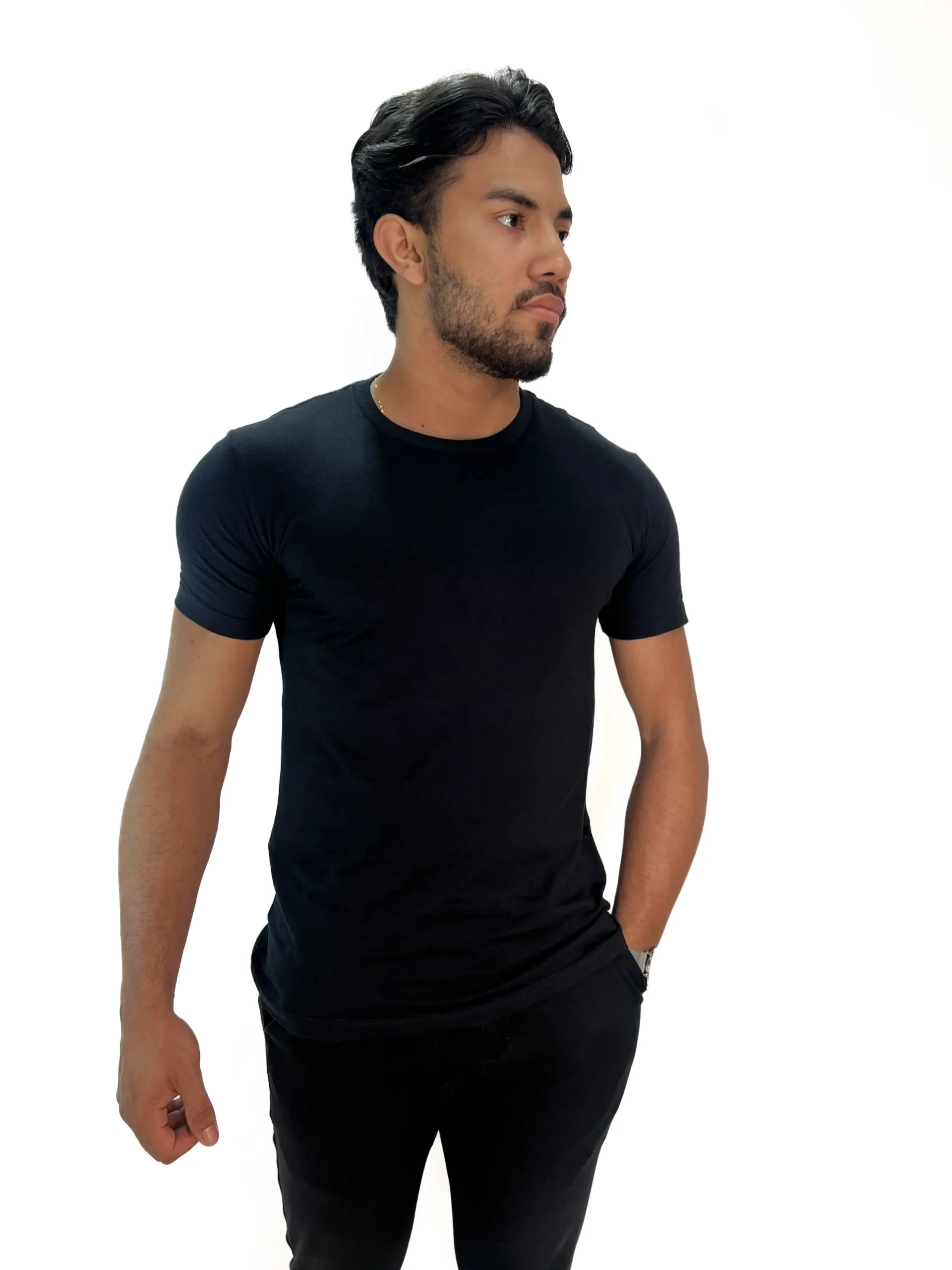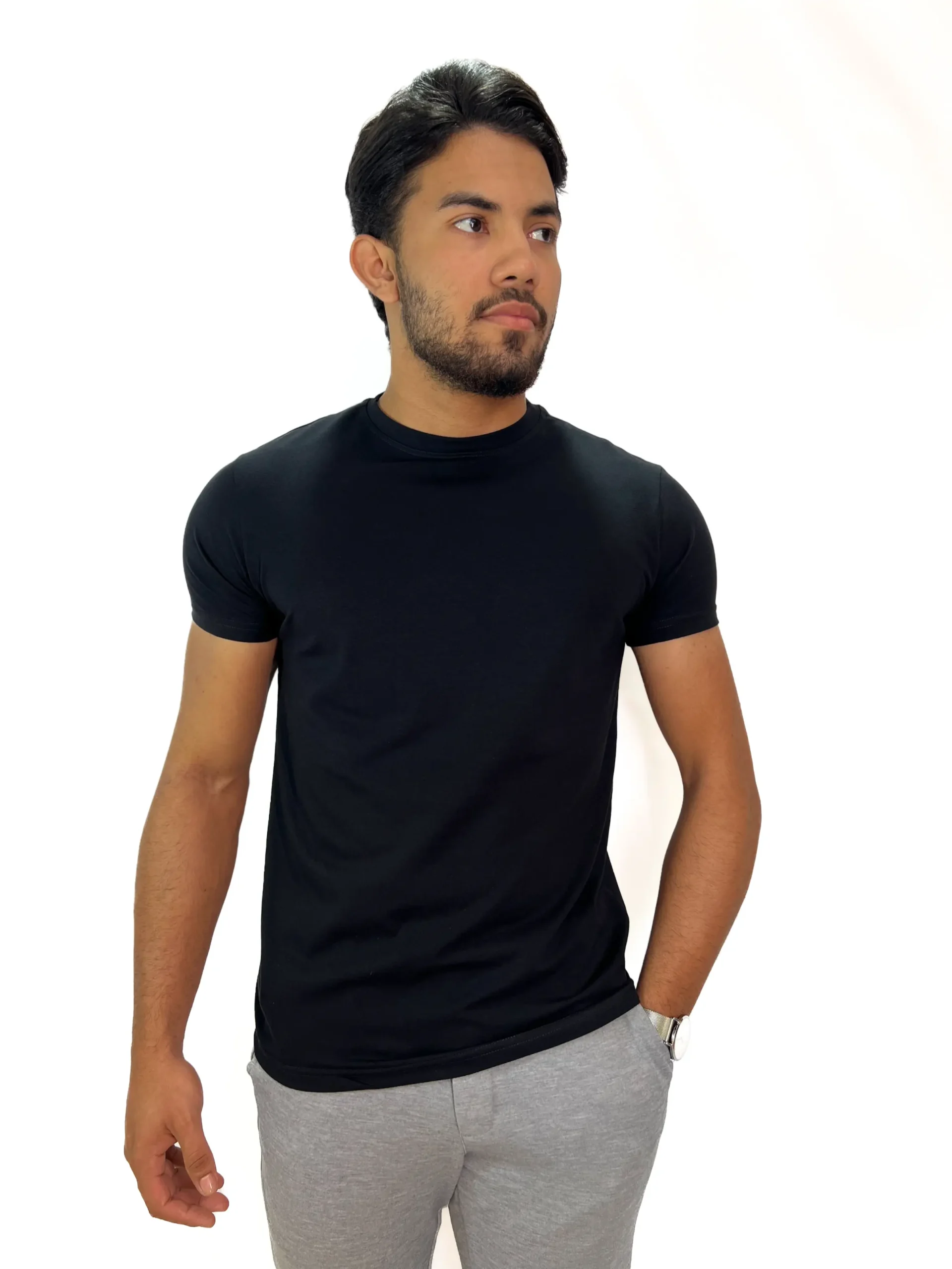 Camiseta Básica Zetsus Preta em Algodão Menegotti Fio 30.1 Penteado