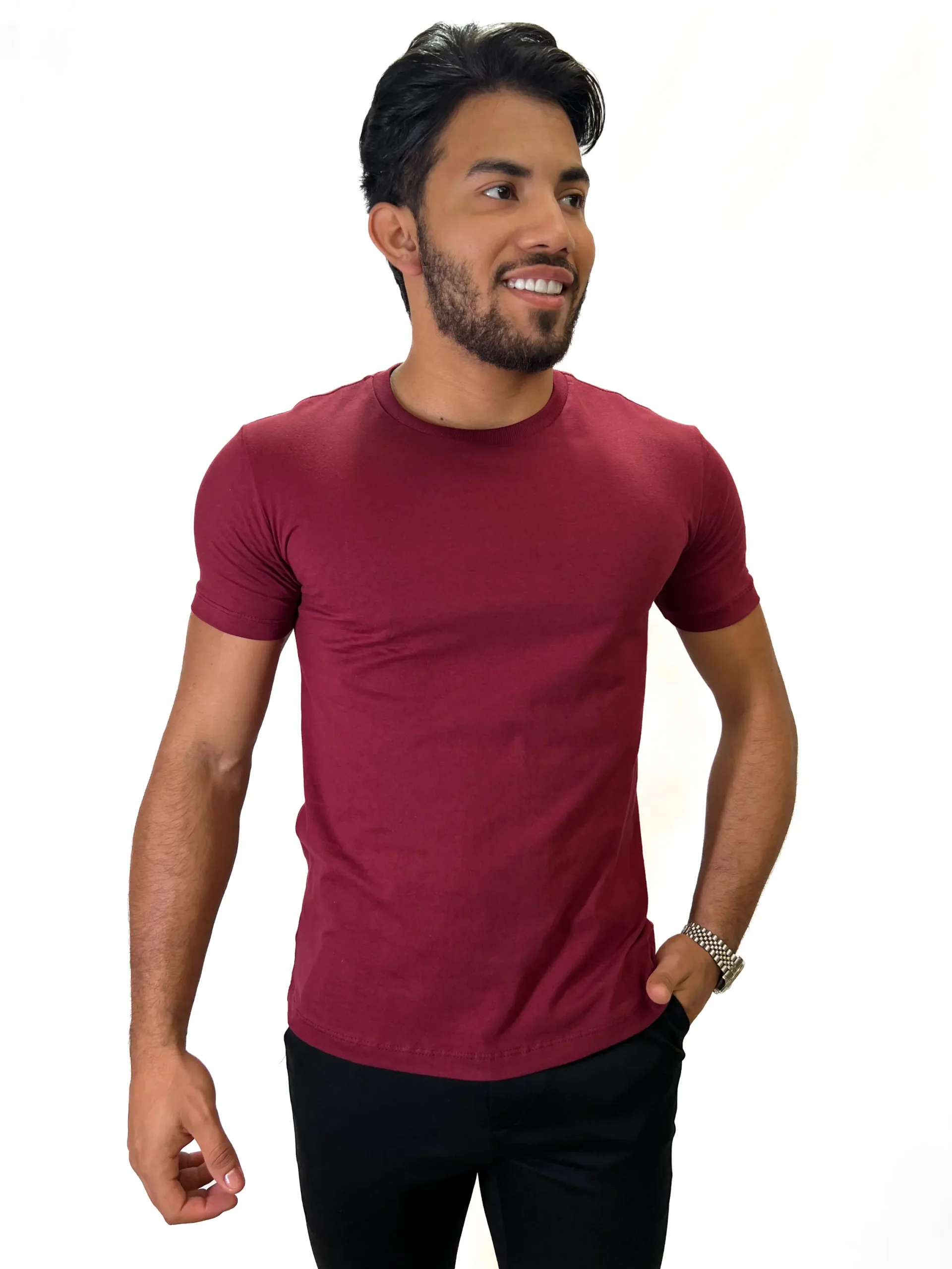 Camiseta Básica Zetsus Bordô em Algodão Menegotti Fio 30.1 Penteado