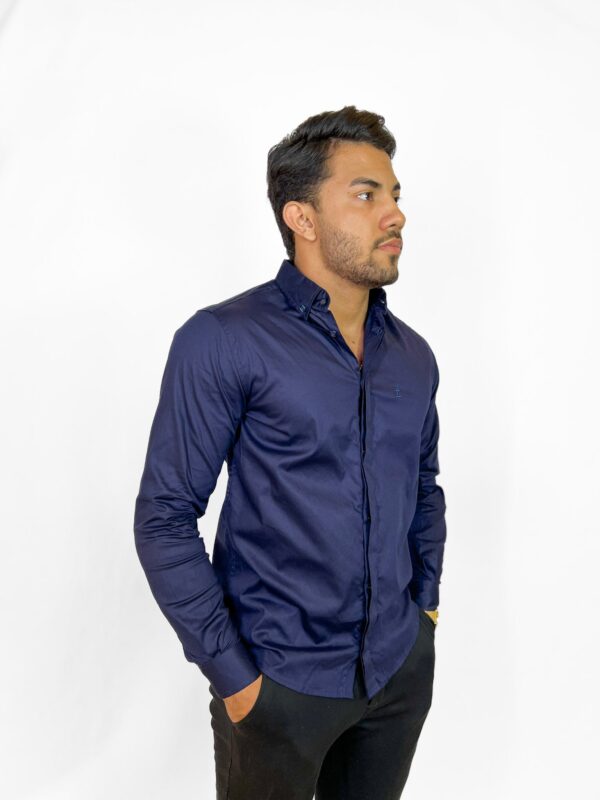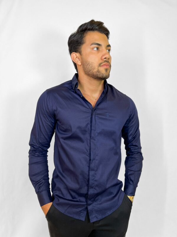 Camisa Social Manga Longa Lapela Dupla Azul Marinho