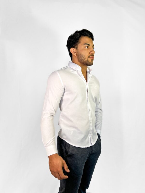 Camisa Social Manga Longa Rosa em Oxford Linho