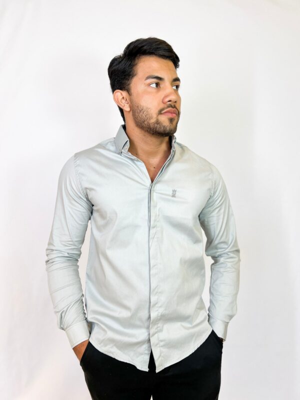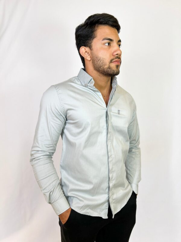 Camisa Social Manga Longa Lapela Dupla Cinza Claro