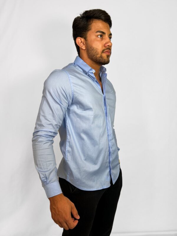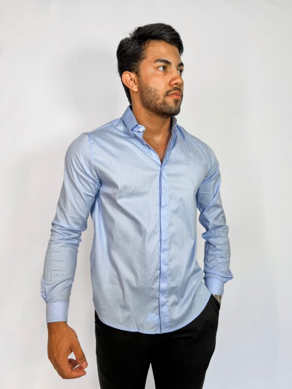 Camisa Social Manga Longa Lapela Dupla Azul Claro