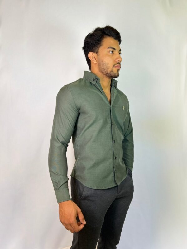 Camisa Social Manga Longa Lapela Dupla verde