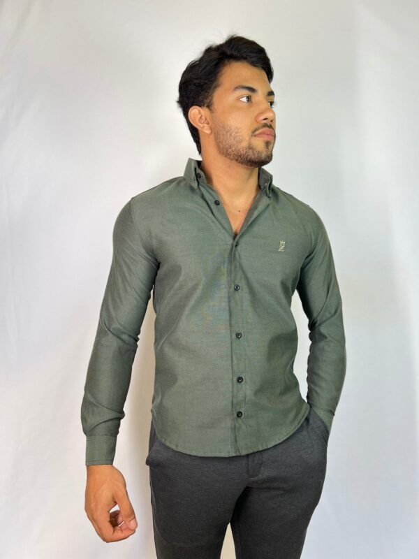 R$ 246,00 até 12x de R$ 26,63Camisa Social Manga Longa Verde Oxford Linho