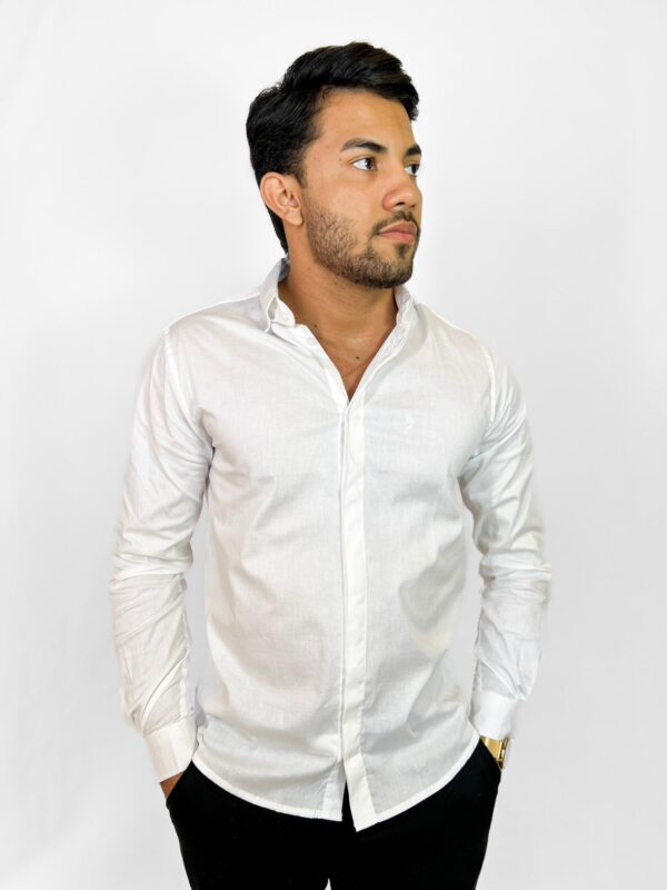 O preço original era: R$ 192,60.R$ 75,00O preço atual é: R$ 75,00. até 12x de R$ 8,12Camisa Social Manga Longa Lapela Dupla Branca
