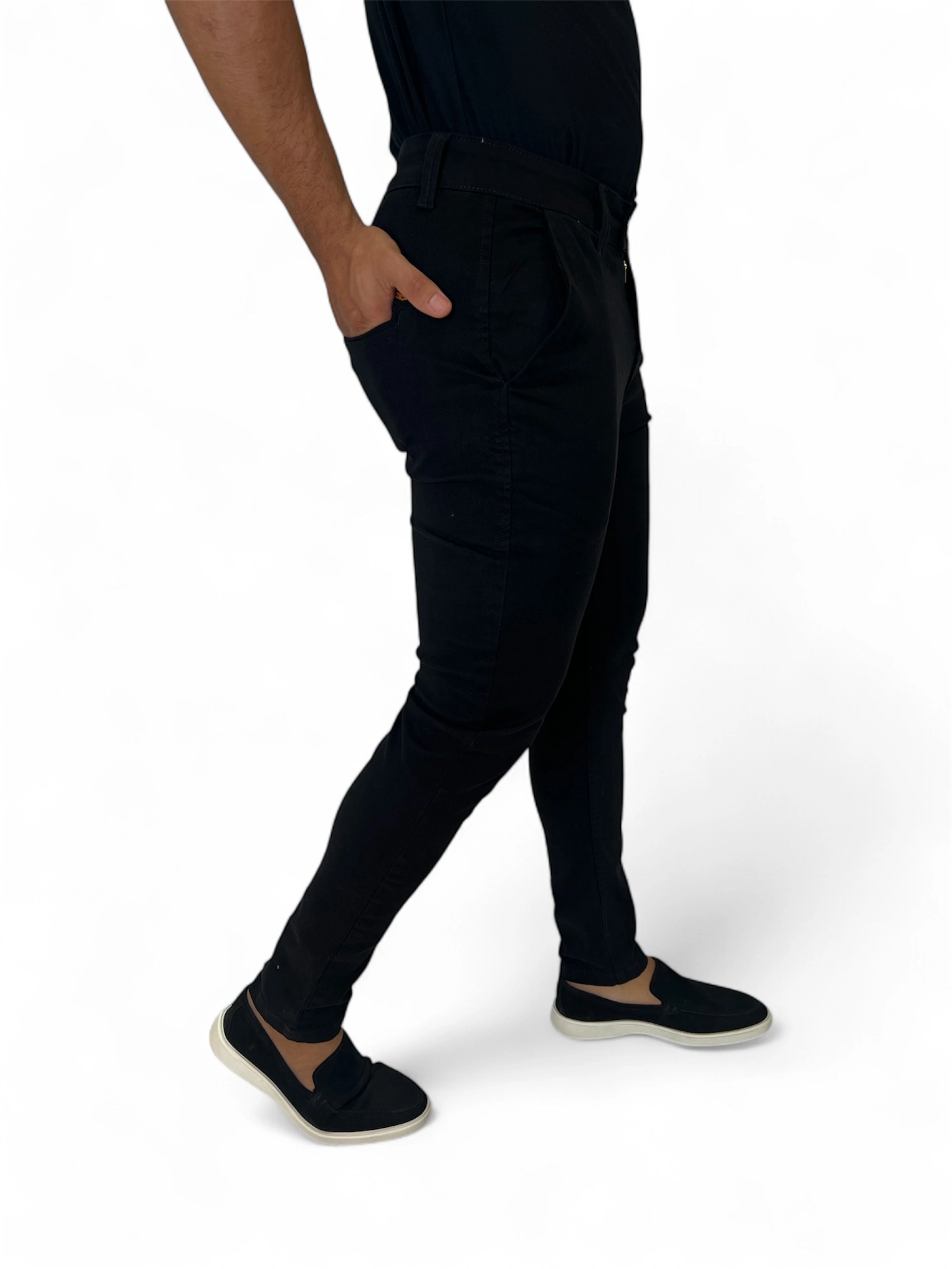 R$ 428,00 até 12x de R$ 46,32Calça Alfaiataria Zetsus Cós Italiano Preta em Algodão e Elastano