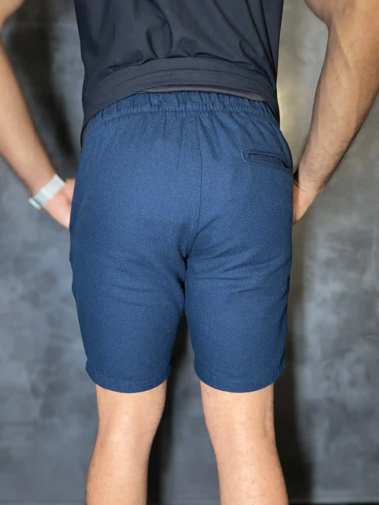 Caimento Estruturado: A textura ajuda a manter a forma da bermuda no corpo.