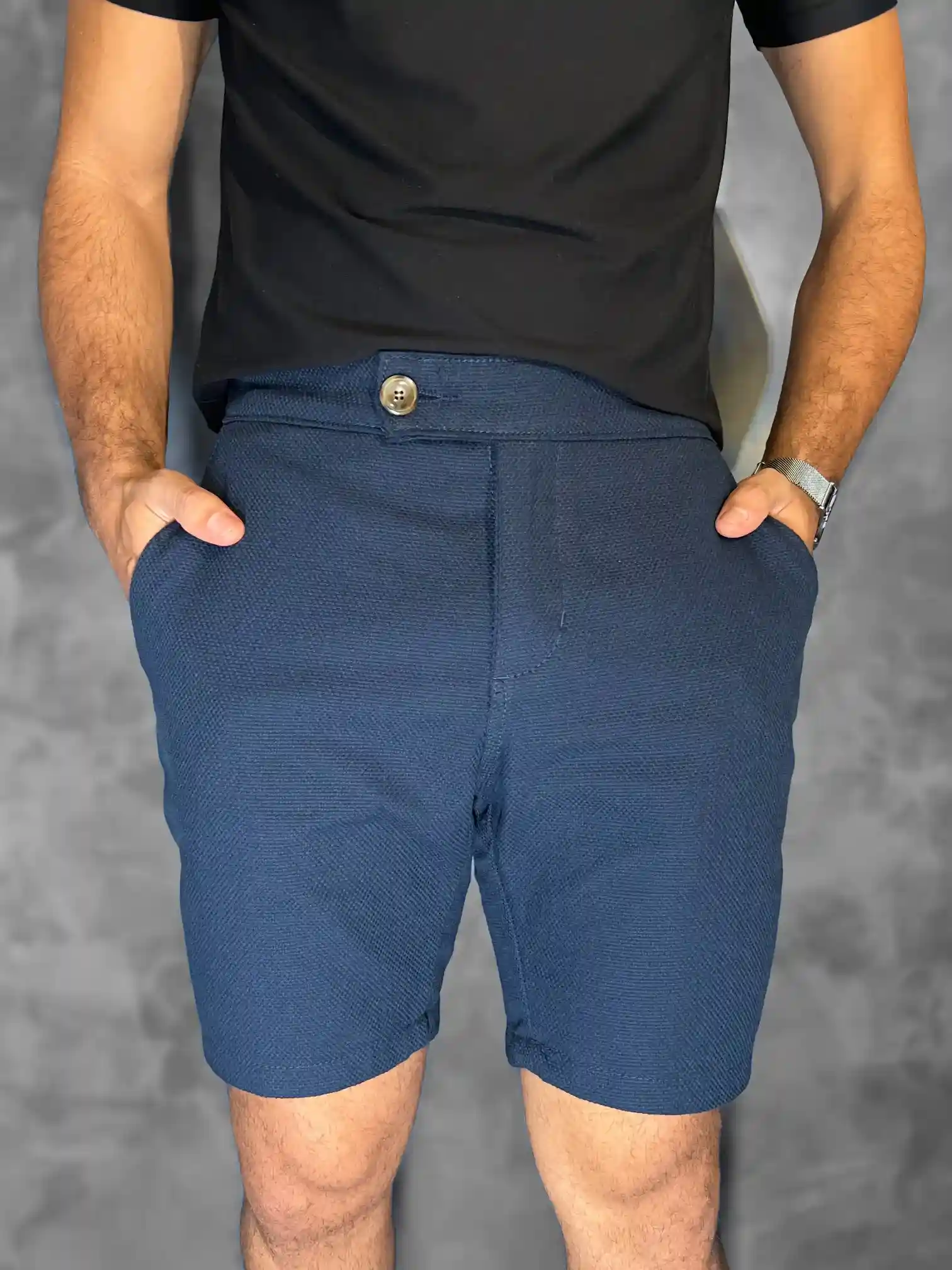 Bermuda Texture Zetsus 100% Algodão Azul Marinho