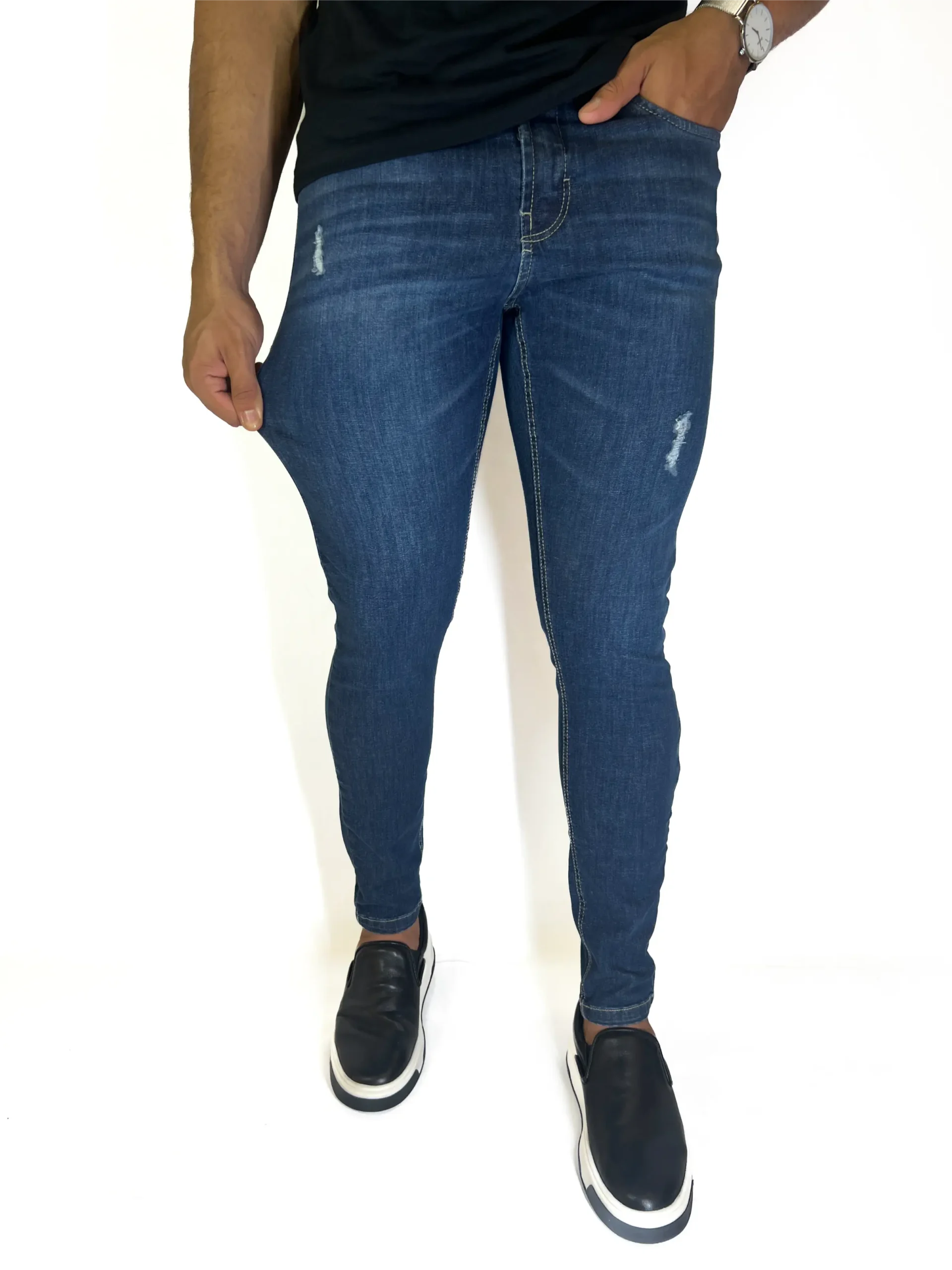Calça Jeans Zetsus Linha Premium Modelagem Slim Azul Destroyd