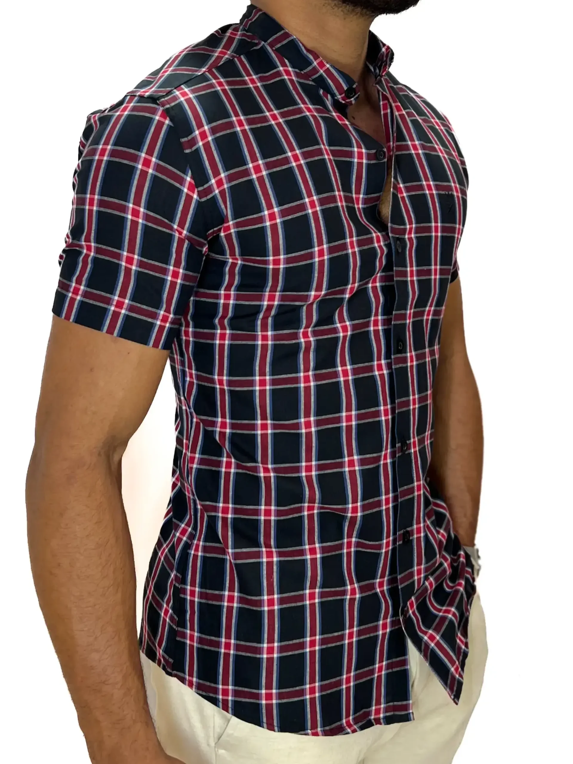 R$ 49,99 até 12x de R$ 5,41Camisa Social Zetsus Gola Padre Xadrez Vermelha e Preto