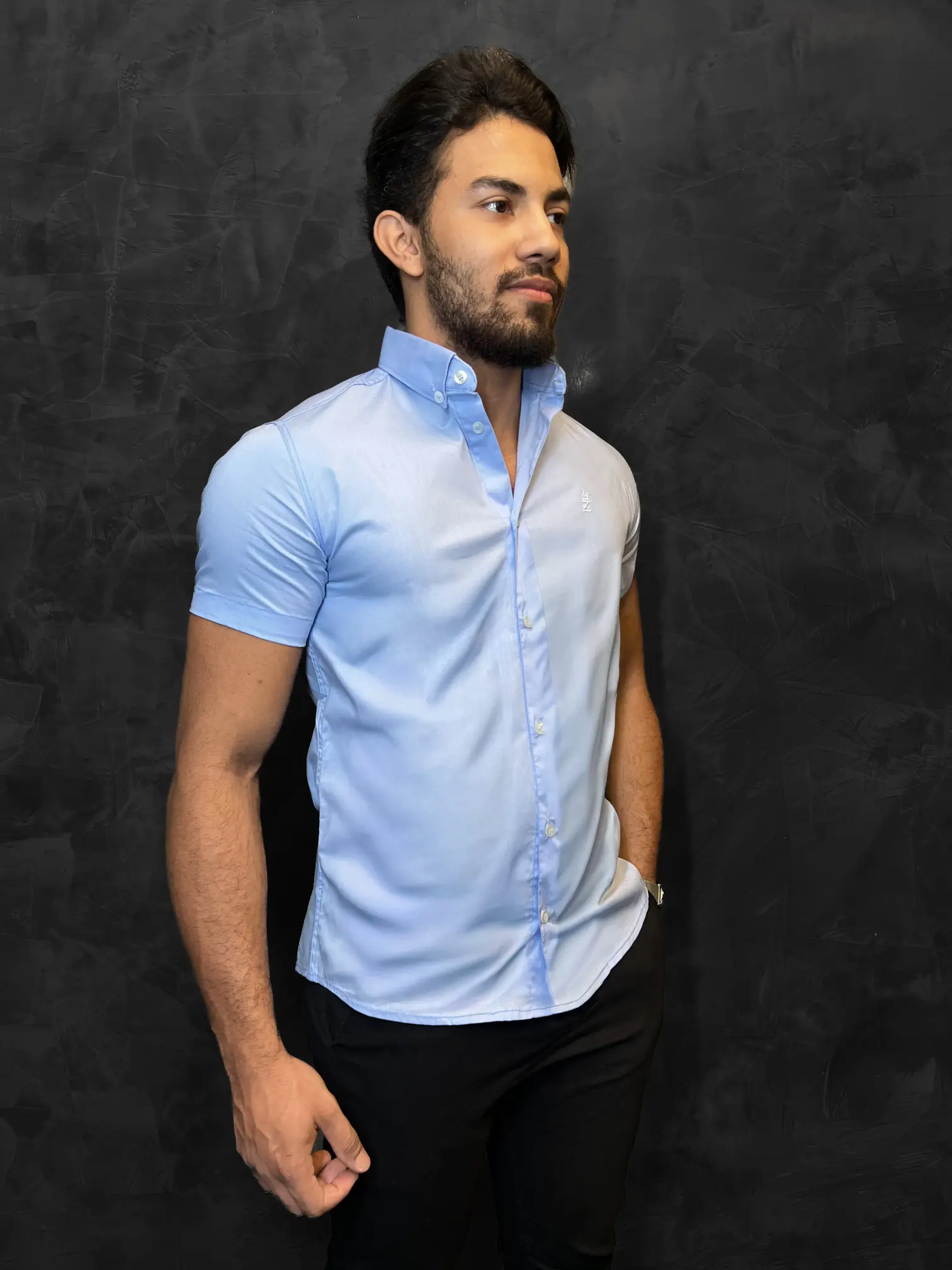 Camisa Social Zetsus Manga Curta Azul Violeta em Algodão Nobre