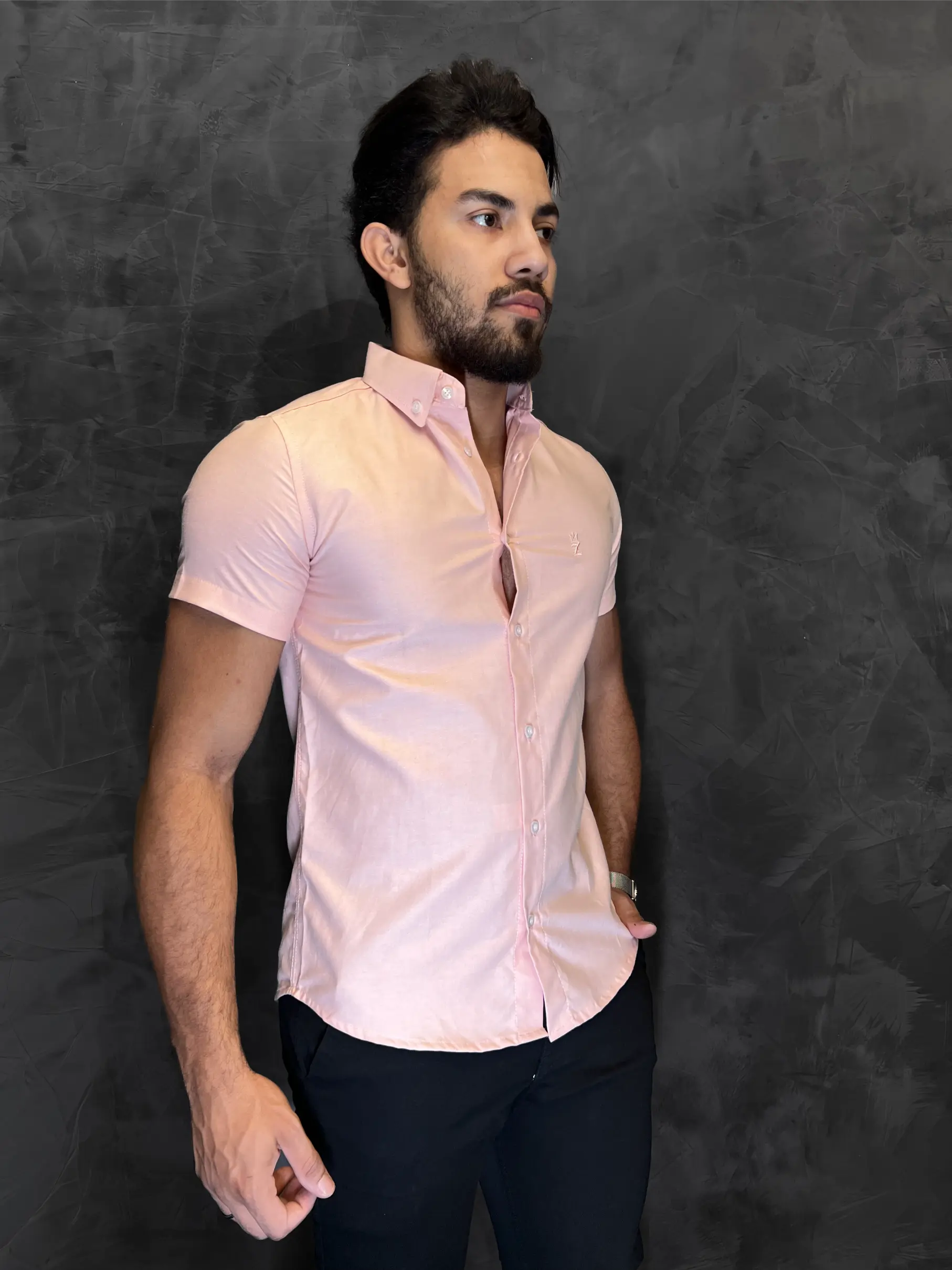 Camisa Social Zetsus Manga Curta Rosa em Algodão Nobre