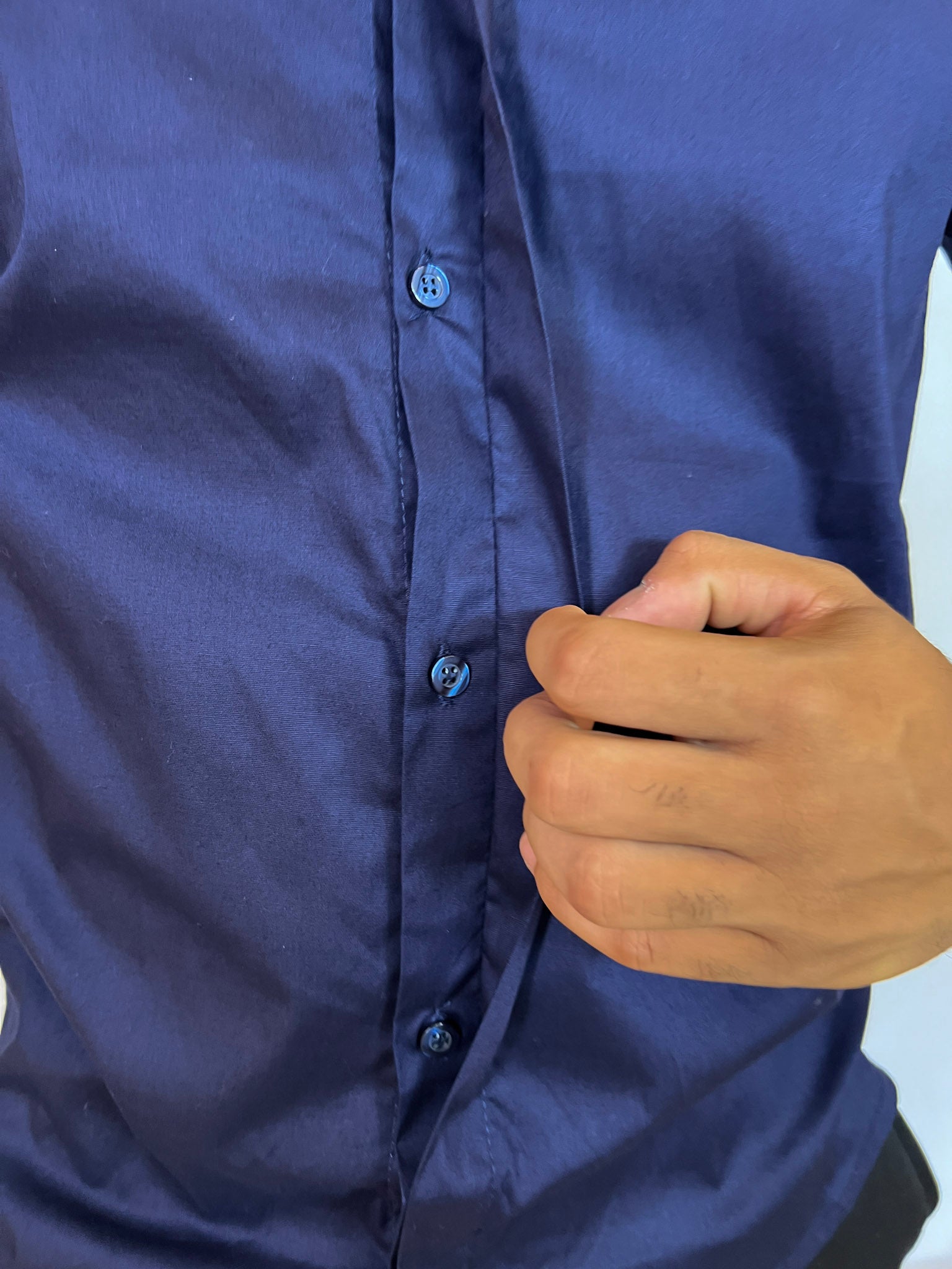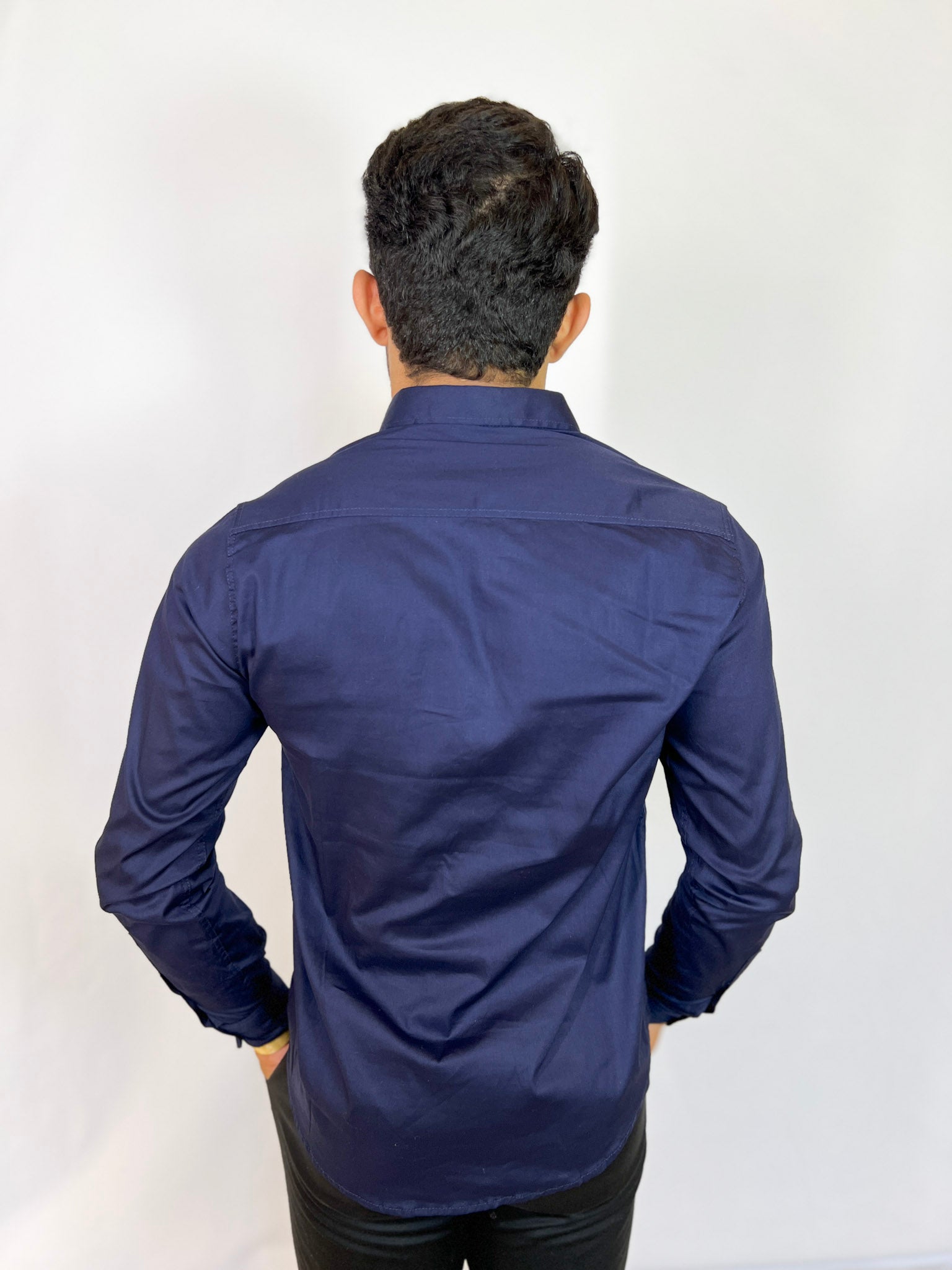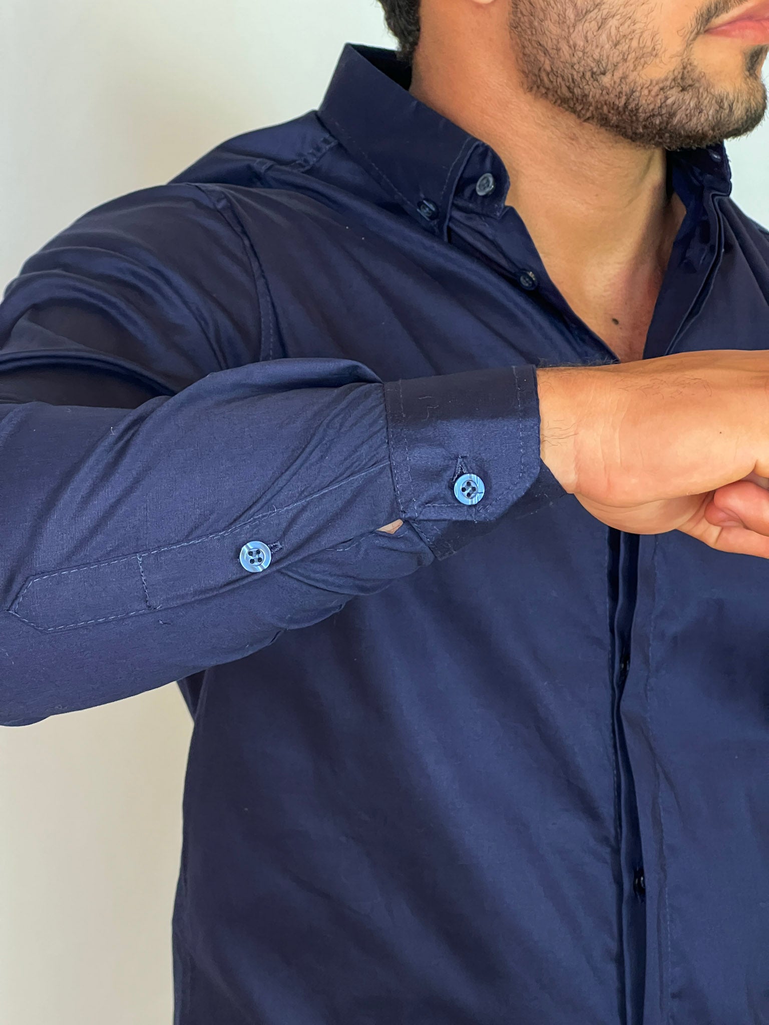 Camisa Social Manga Longa Lapela Dupla Azul Marinho