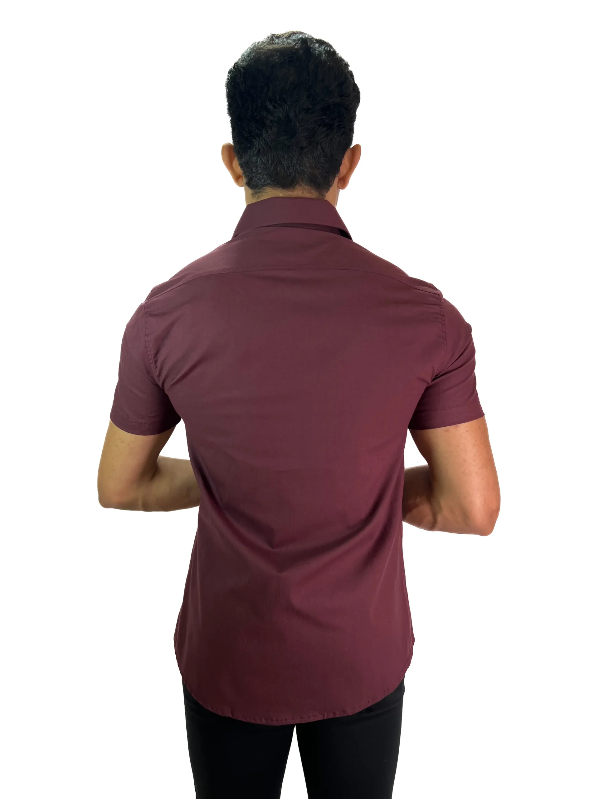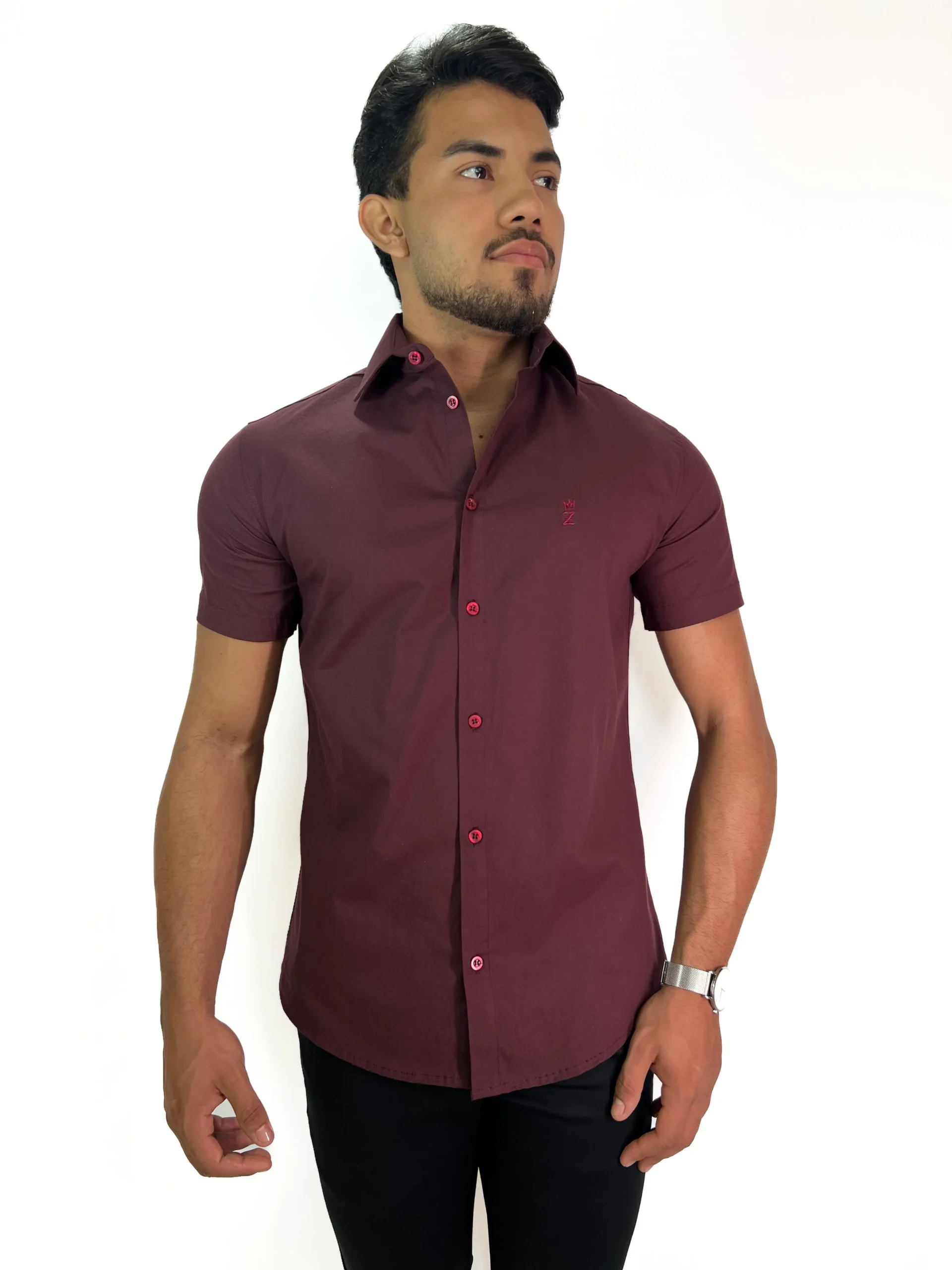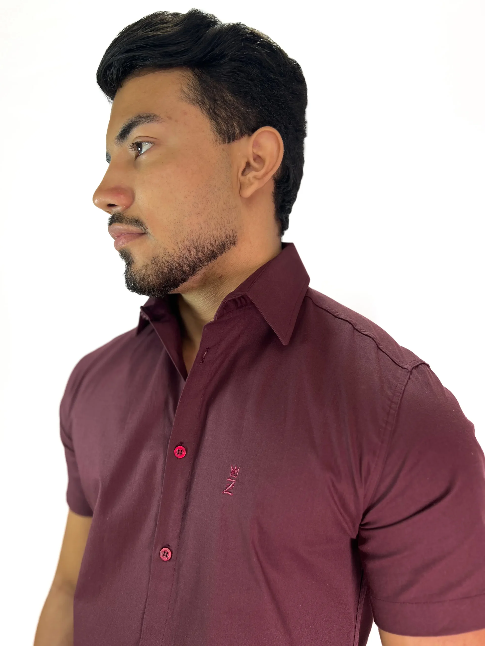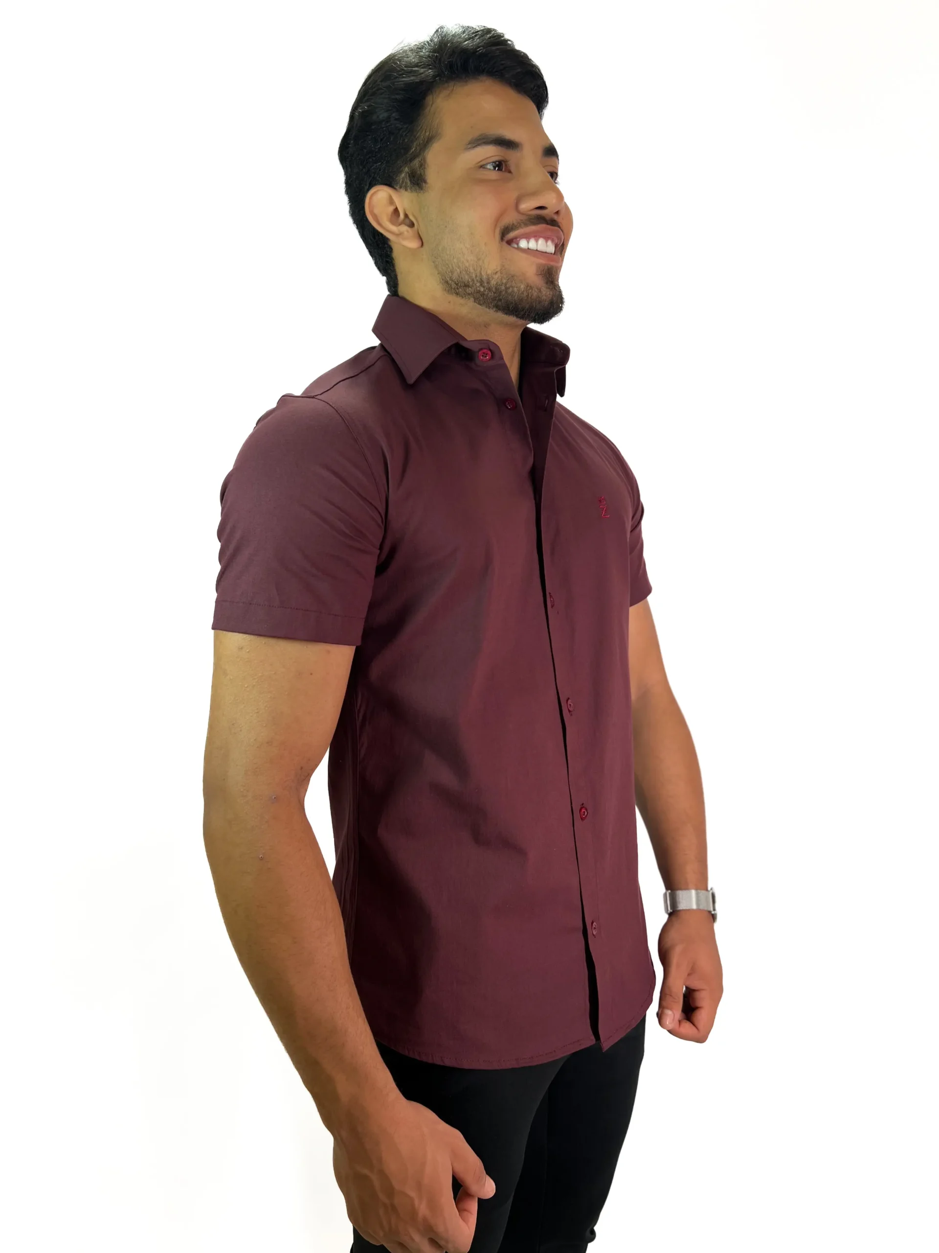 Camisa Social Manga Curta Colarinho Italiano Bordo