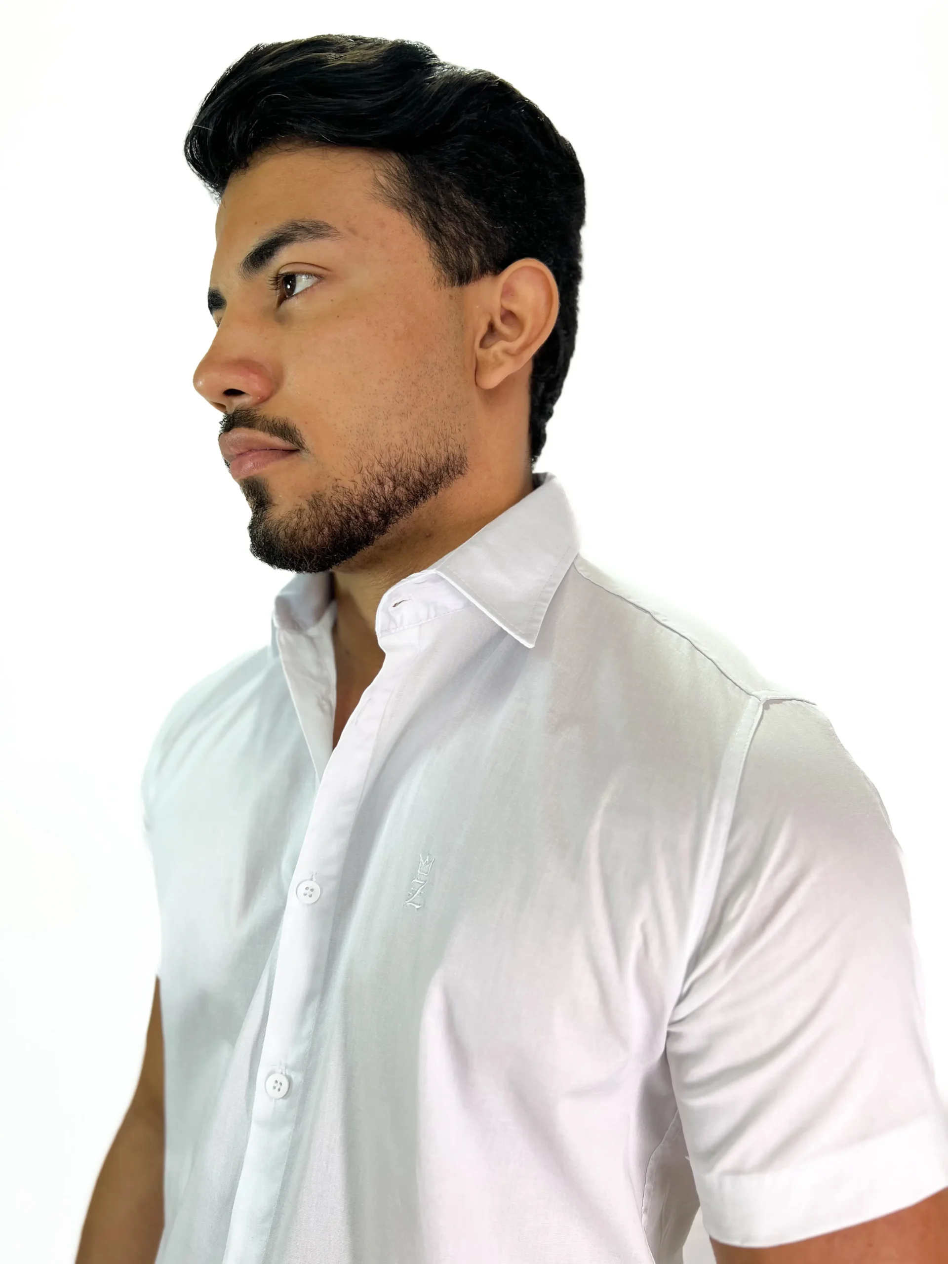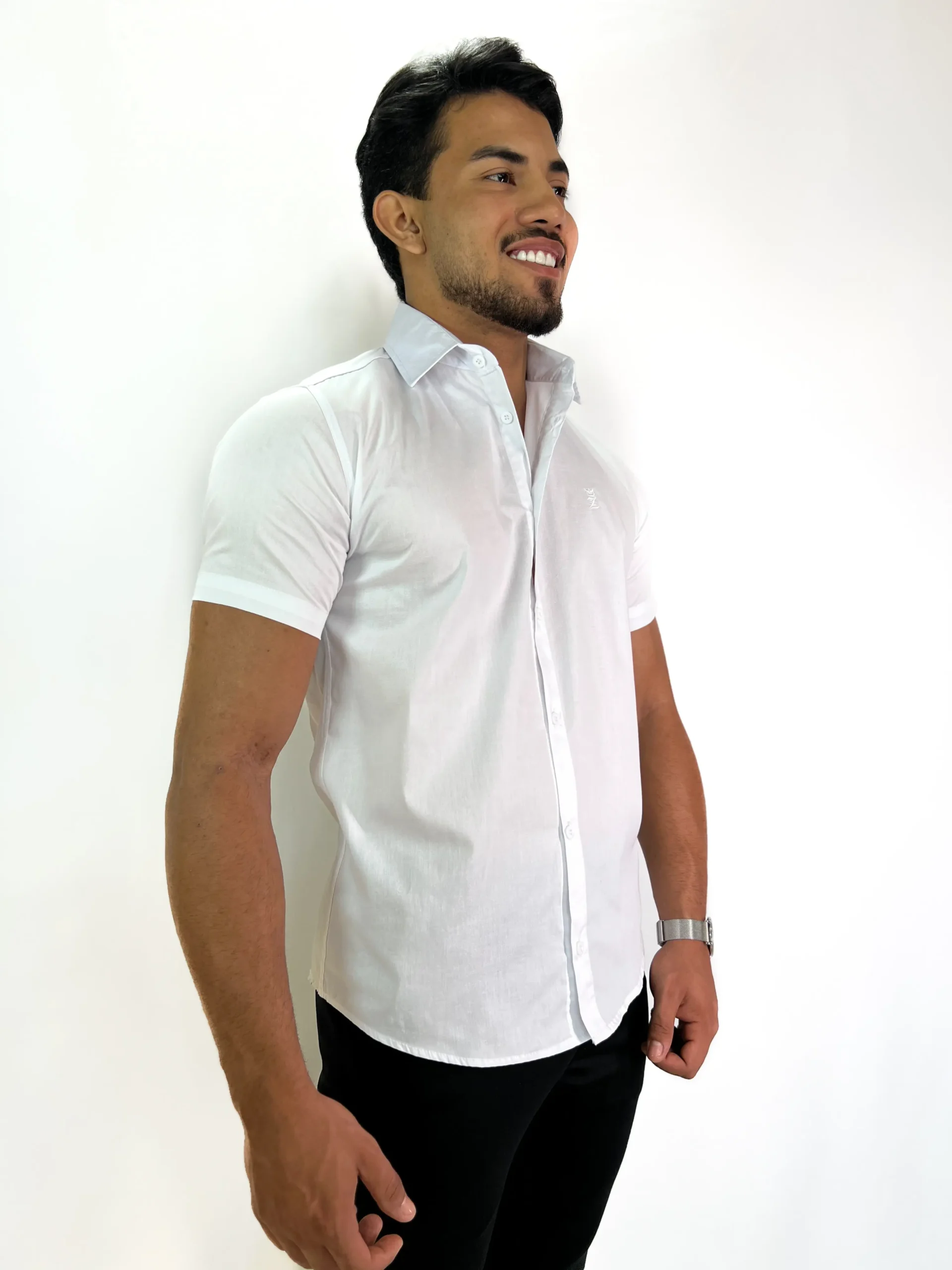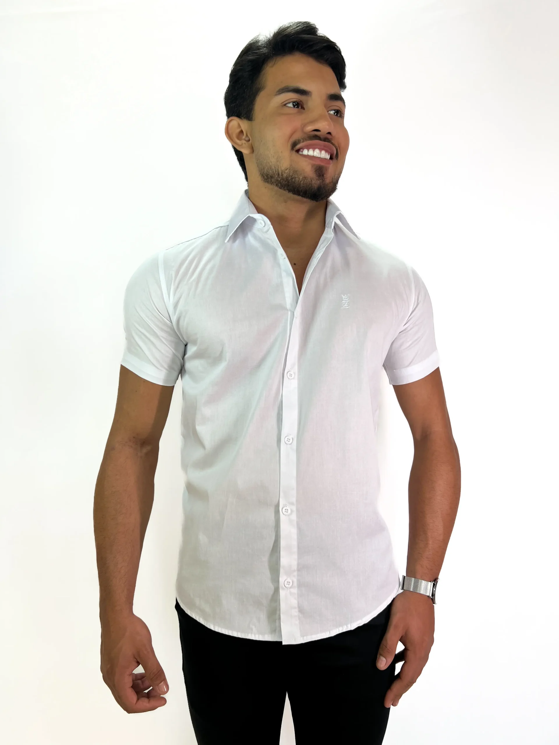 Camisa Social Manga Curta Colarinho Italiano Branca