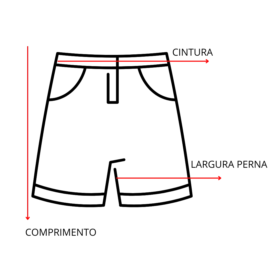 | Tamanho | Cintura | Largura perna | Comprimento |