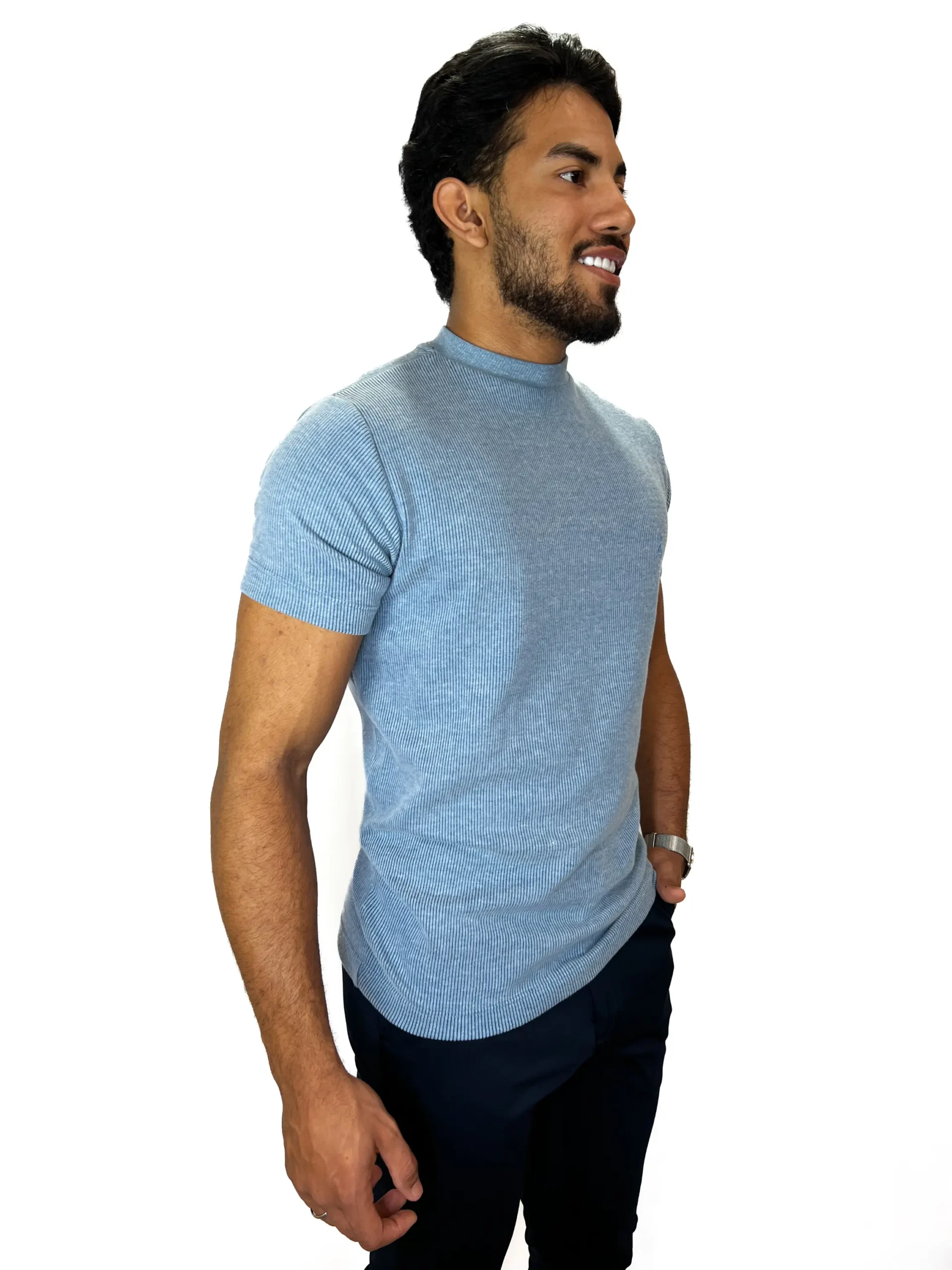 T-shirt Gola Média Tricot Champy Zetsus Azul Céu Algodão e Elastano