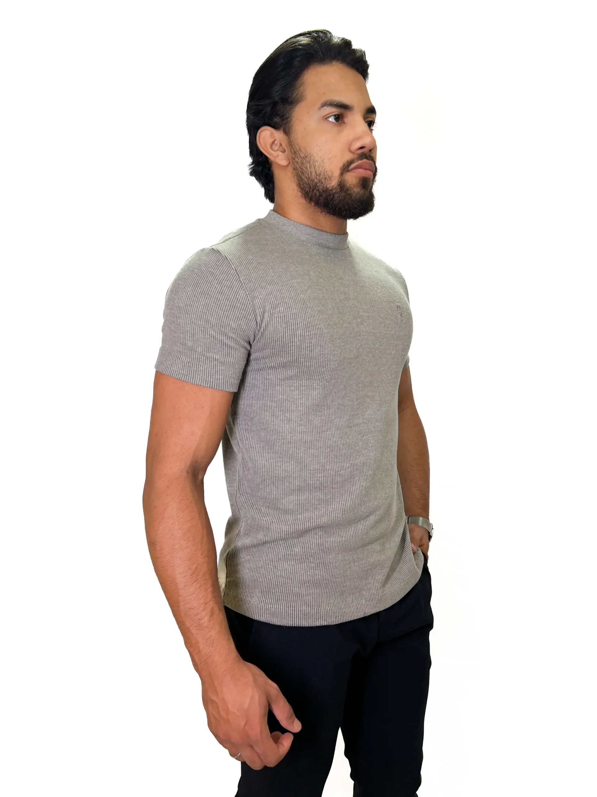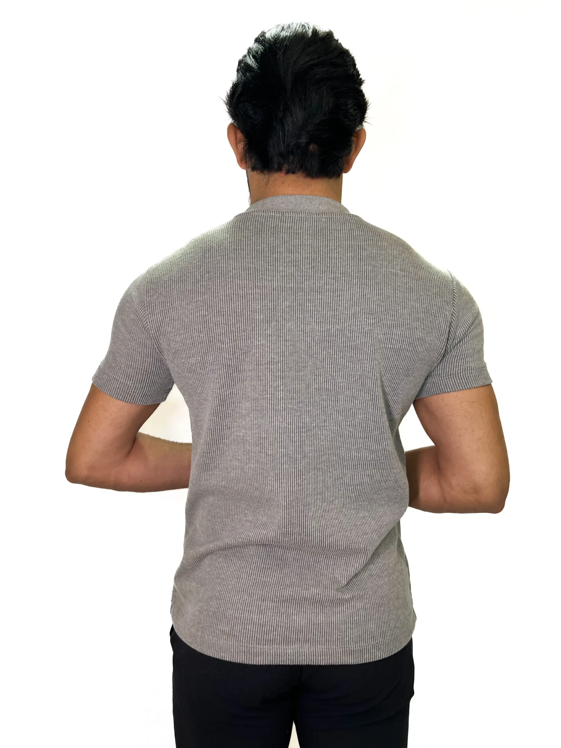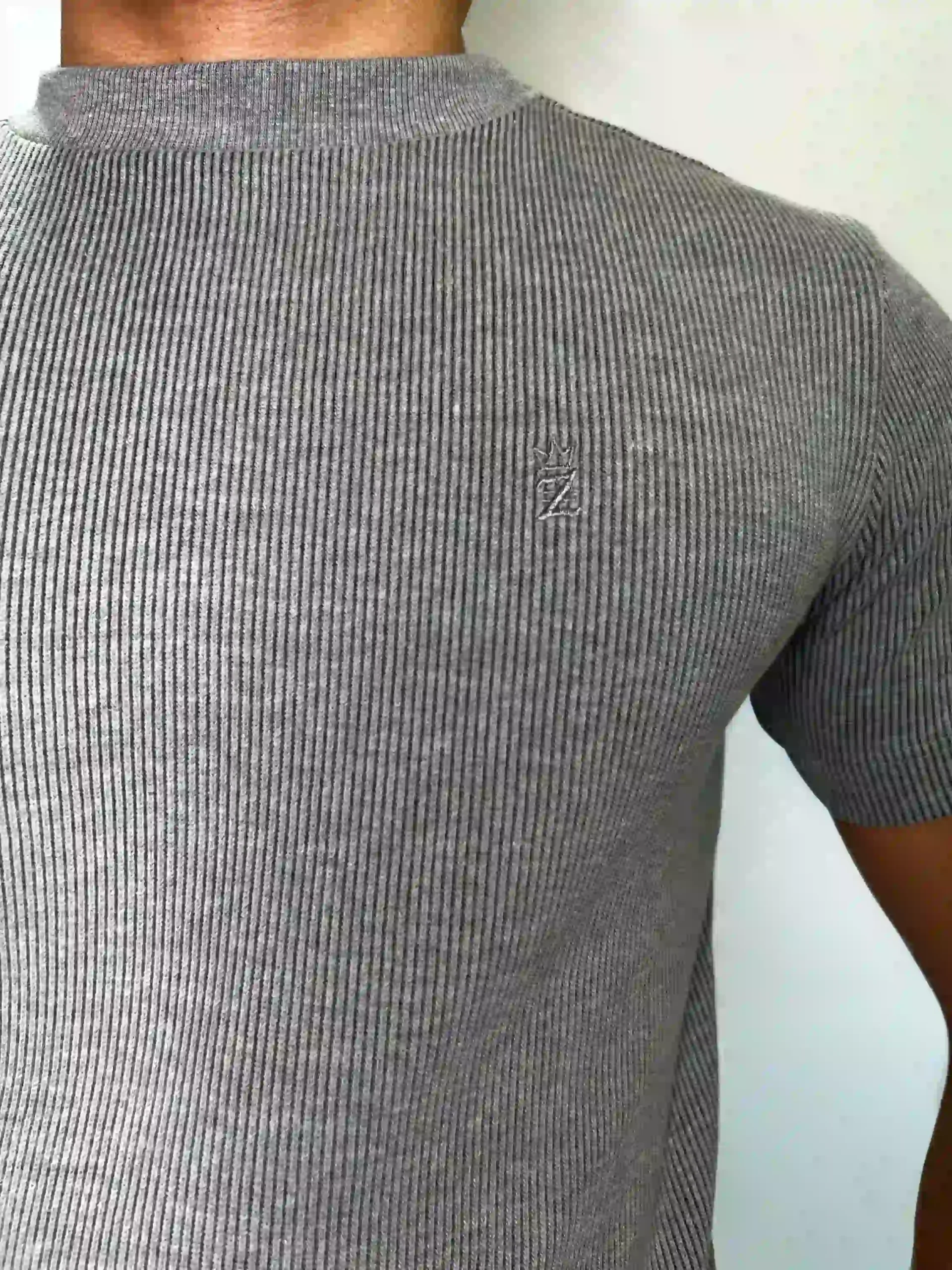 T-shirt Gola Média Tricot Champy Zetsus Cinza Claro Algodão e Elastano